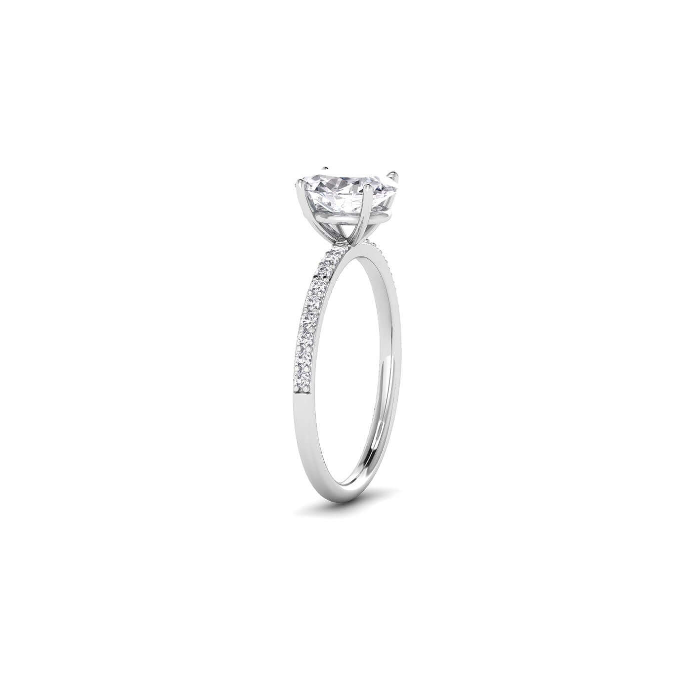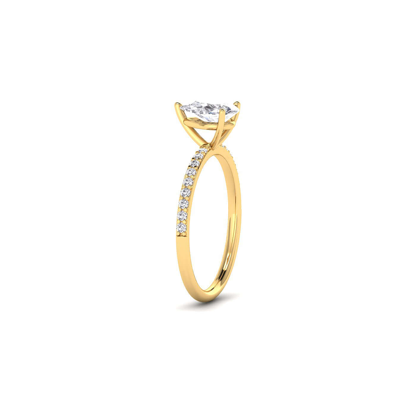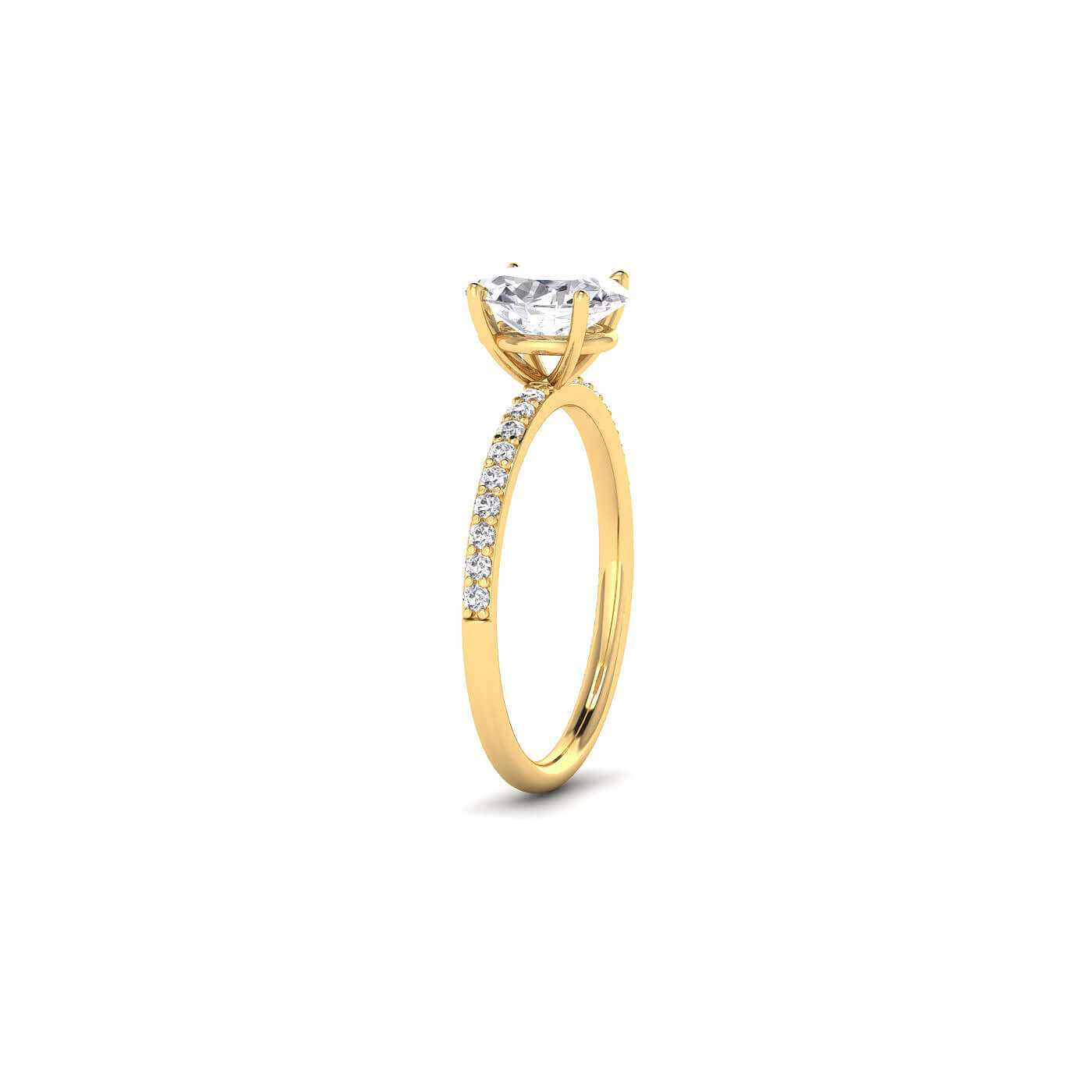 Our Ceres Ring is carefully designed to float on your finger. A delicate 18k gold band is sprinkled with tiny accent diamonds. The setting is open in a way that the centre diamond draws in light and spotlights clarity, so that your love can shine like a bright star. This design can be further customised with a variety of diamond shapes and sizes. All of our engagement diamonds are accompanied with a certificate from the International Gemological Institute (IGI) and have a minimum colour of F, minimum clarity of VS1 and are excellent cut. Please include your ring size in the order notes. To schedule an appointment with our team click here.