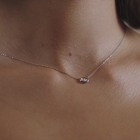Our stunning 0.10ct Marquise Impression Necklace will leave you speechless. A unique setting with a soft pillow around the diamond will charm all onlookers. The perfect essential on a 45cm chain is sure to become your second skin.