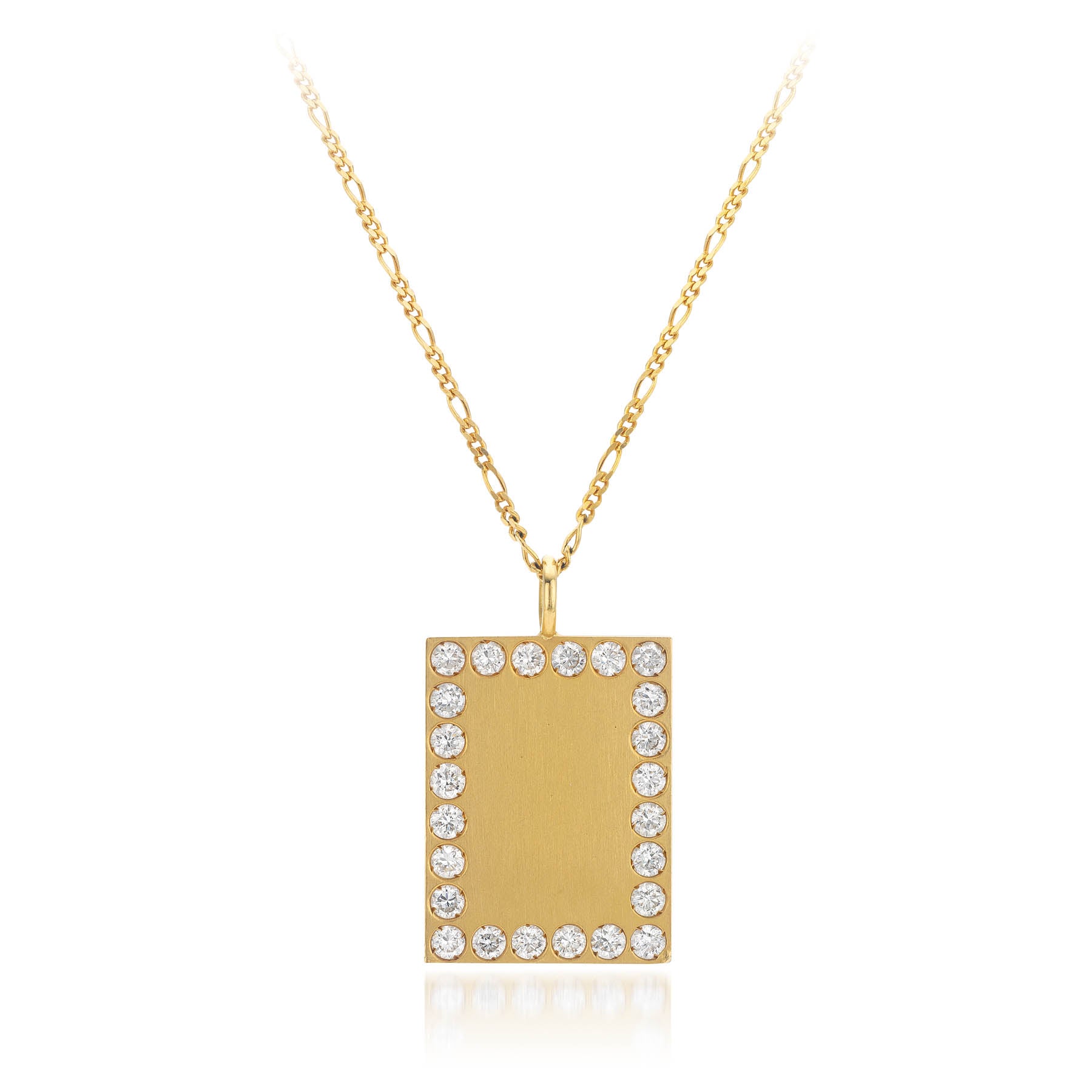 Pierced with 0.72cts of round brilliant cut diamonds, our brushed gold slate will ground you no matter where you are. A fresh modern take on the identity tag with a solid feel that will make you want to wear it forever.