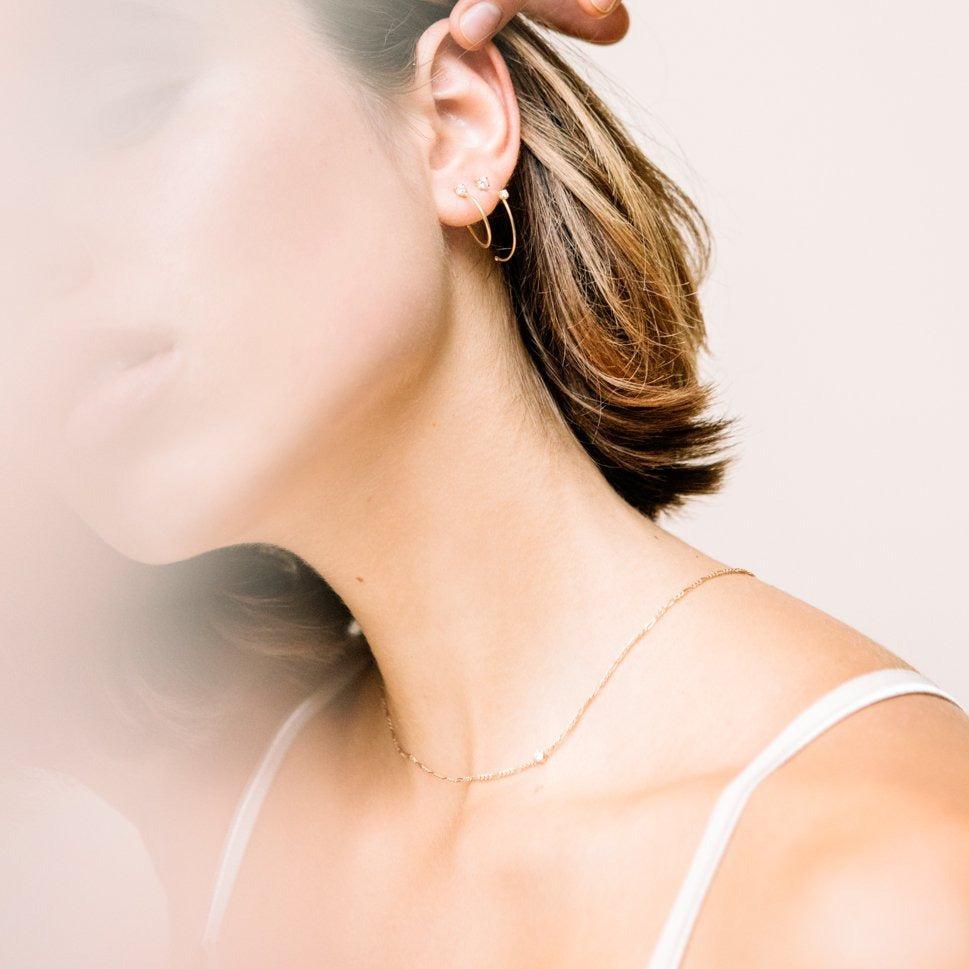 Inspired by our Moon orbiting around the Earth, these hoops will float on your ears and transport you to space. Are you ready for the launch? Featuring 0.26cts of round brilliant cut diamonds in each pair.