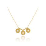 Byzantine craftsmanship meant a special attention to detail. We've taken the traditions of goldsmithery and handmade every bead and charm that rest imperfectly perfect on your neck. Our Zoe Three is strung together with miniature medallions featuring 0.09cts of round brilliant cut diamonds.