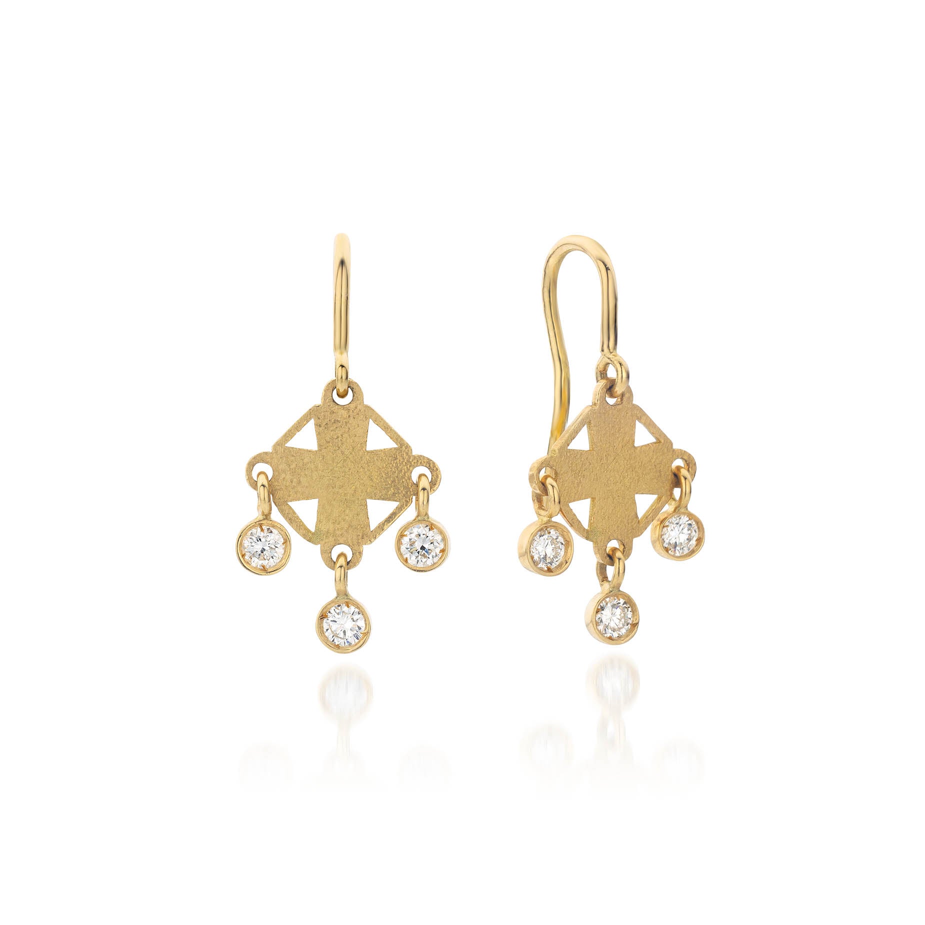 Earrings in textured 18k gold set with 0.18 carats of round brilliant cut natural diamonds.