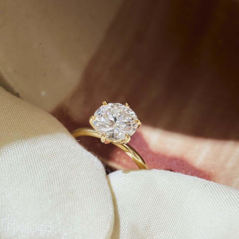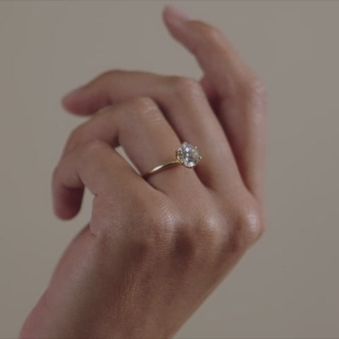 In our archive pieces we use 18k recycled solid gold and lab-grown diamonds. Each diamond larger than 1ct is certified by the International Gemological Institute (IGI) and a certificate is provided with each piece.