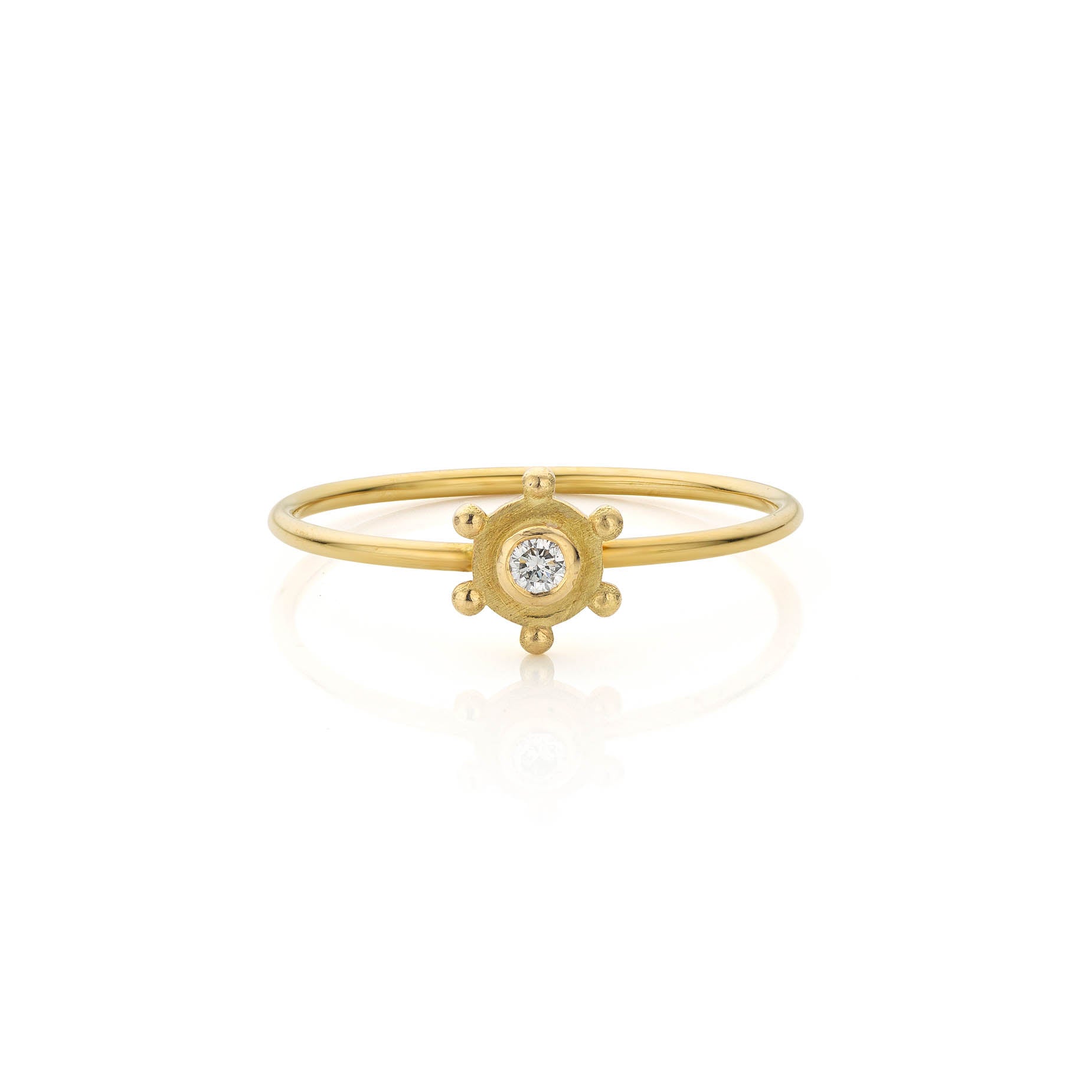 Ring in textured 18k gold set with 0.03 carats of round brilliant cut natural diamonds.