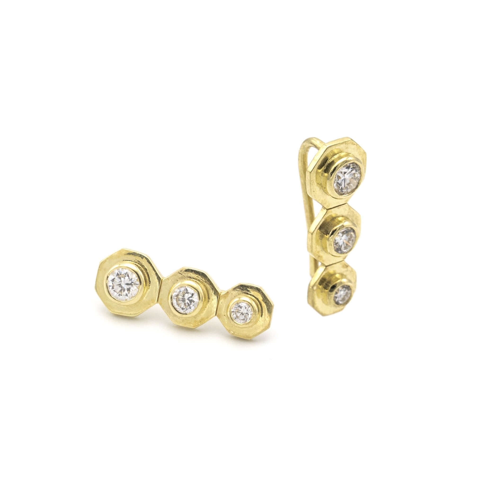 Ear climbers in matte 18k gold set with 0.38 carats of round brilliant cut natural diamonds.