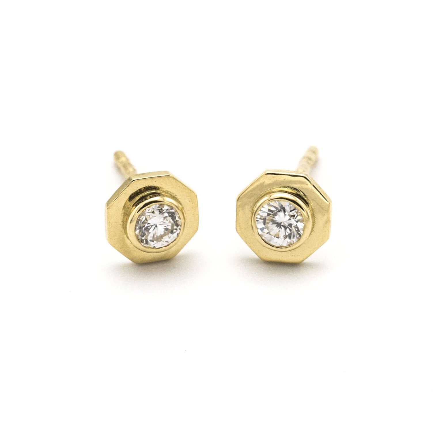 We are dedicated to ethical and sustainable production and use only 18k recycled solid gold and ethically sourced natural diamonds. The colourless diamonds we use are of G/H color and VS clarity.