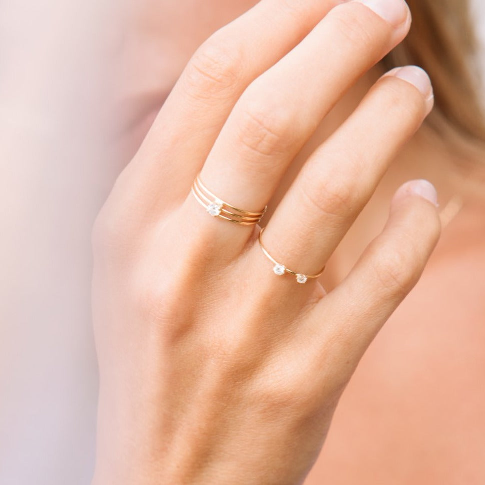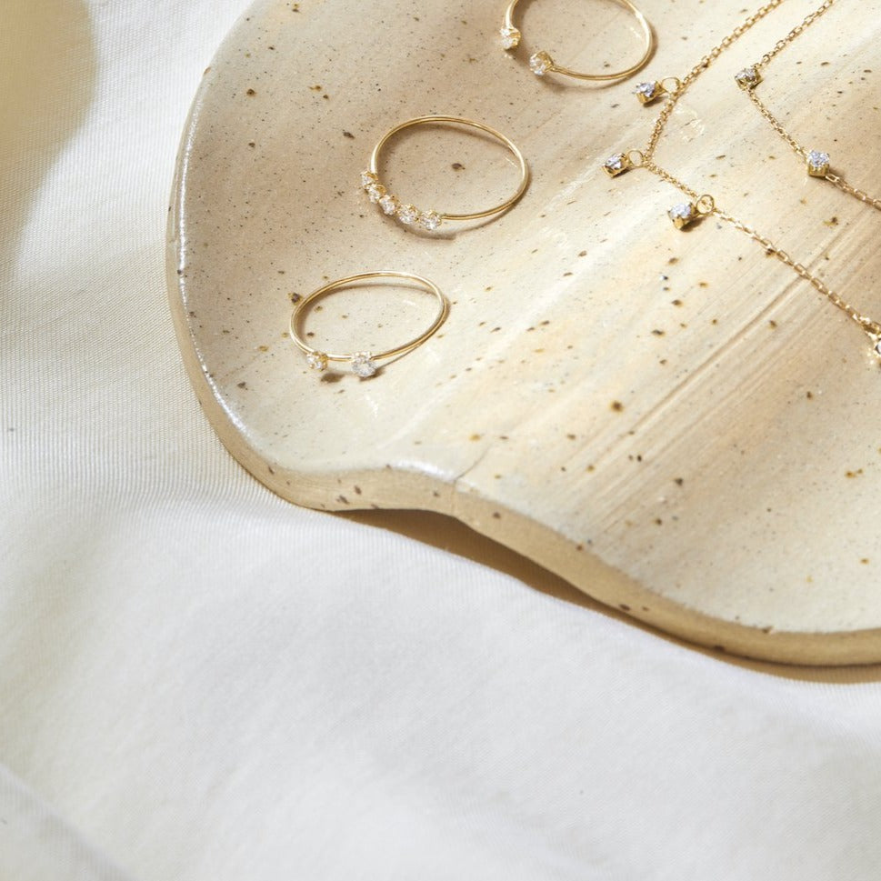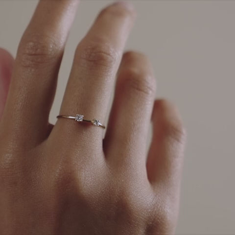 The perfect pairing of the Earth and her Moon captured on your fingertips. Let the diamonds catch the light and glitter as you look up at the skies in awe. Two diamonds weighing a total of 0.13cts float upon the ethereal band.