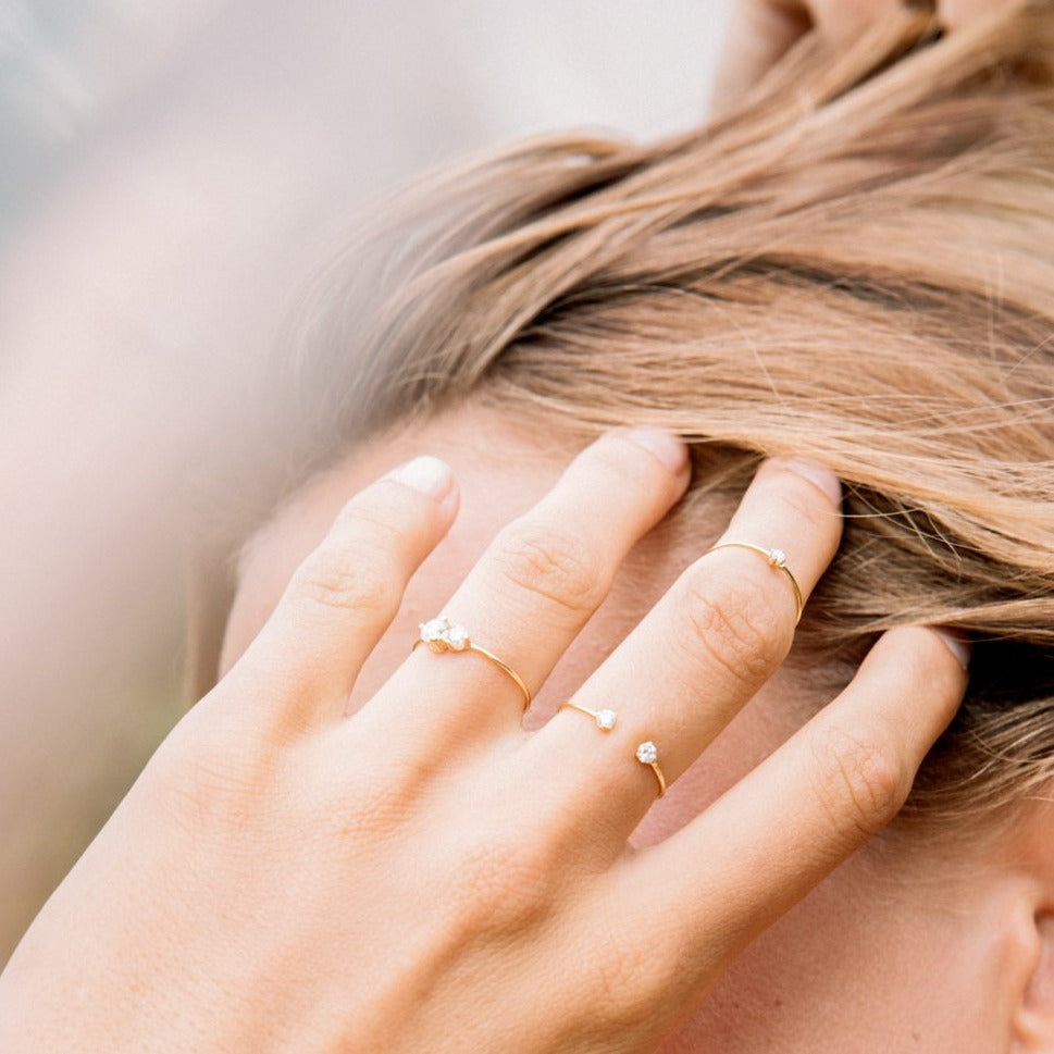 Versatile in its function as a pinky ring or to stack, our Solar Ring is the tiny diamond staple that will complete any ring collection. The diamond weighs 0.03cts.