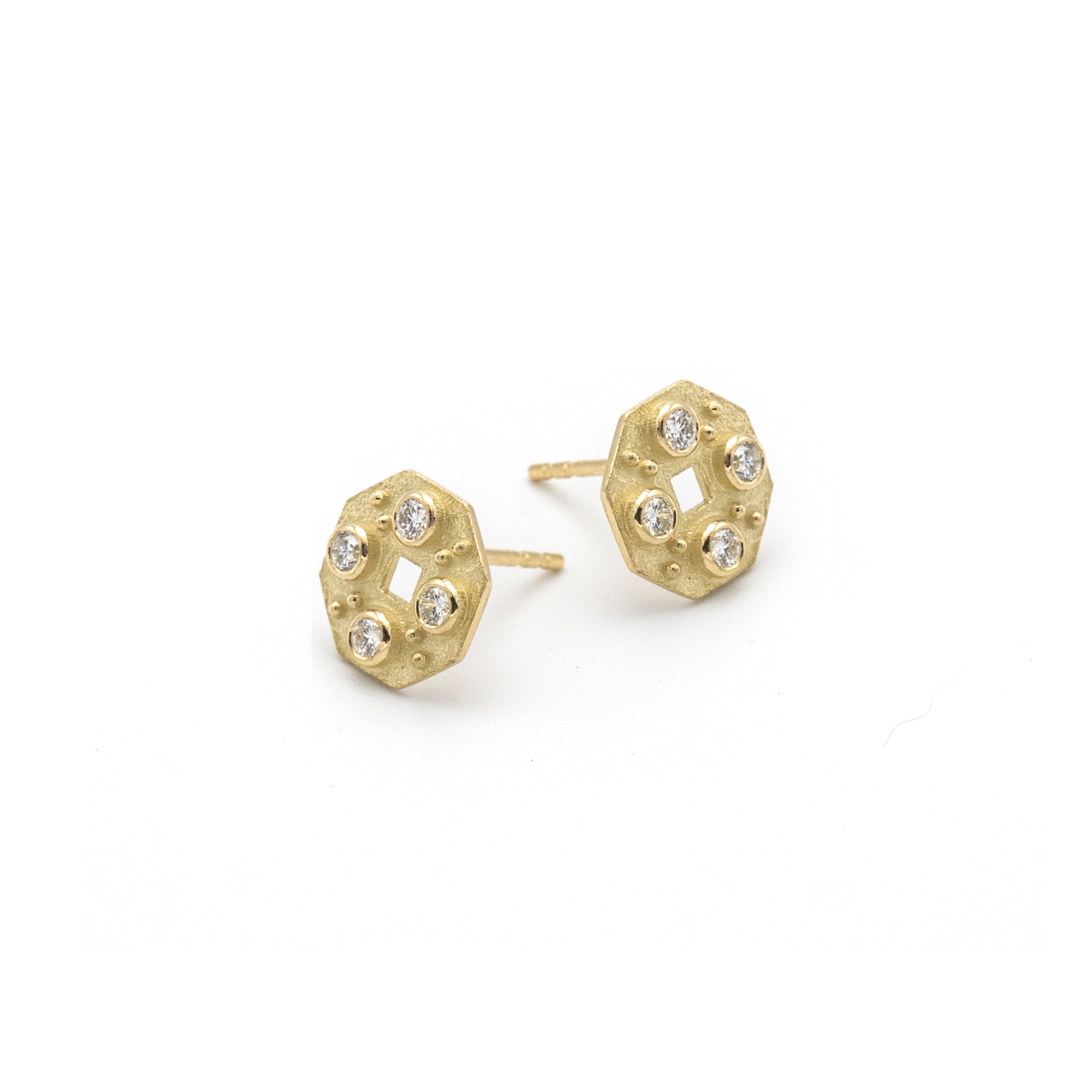 Earrings in textured 18k gold set with 0.24 carats of round brilliant cut natural diamonds.